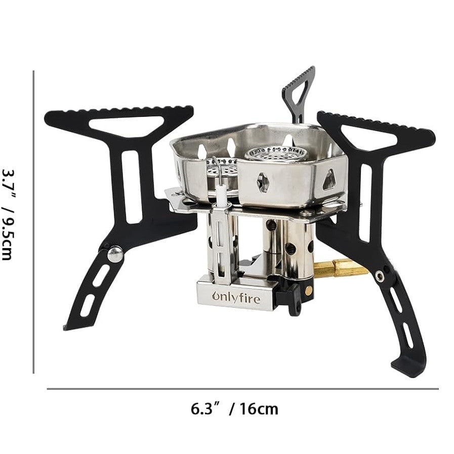 Potente pero compacta estufa orientada para campistas que aprecian el peso y volumen en su equipo, no requiere de mesa, es bien estable con soportes plegables.